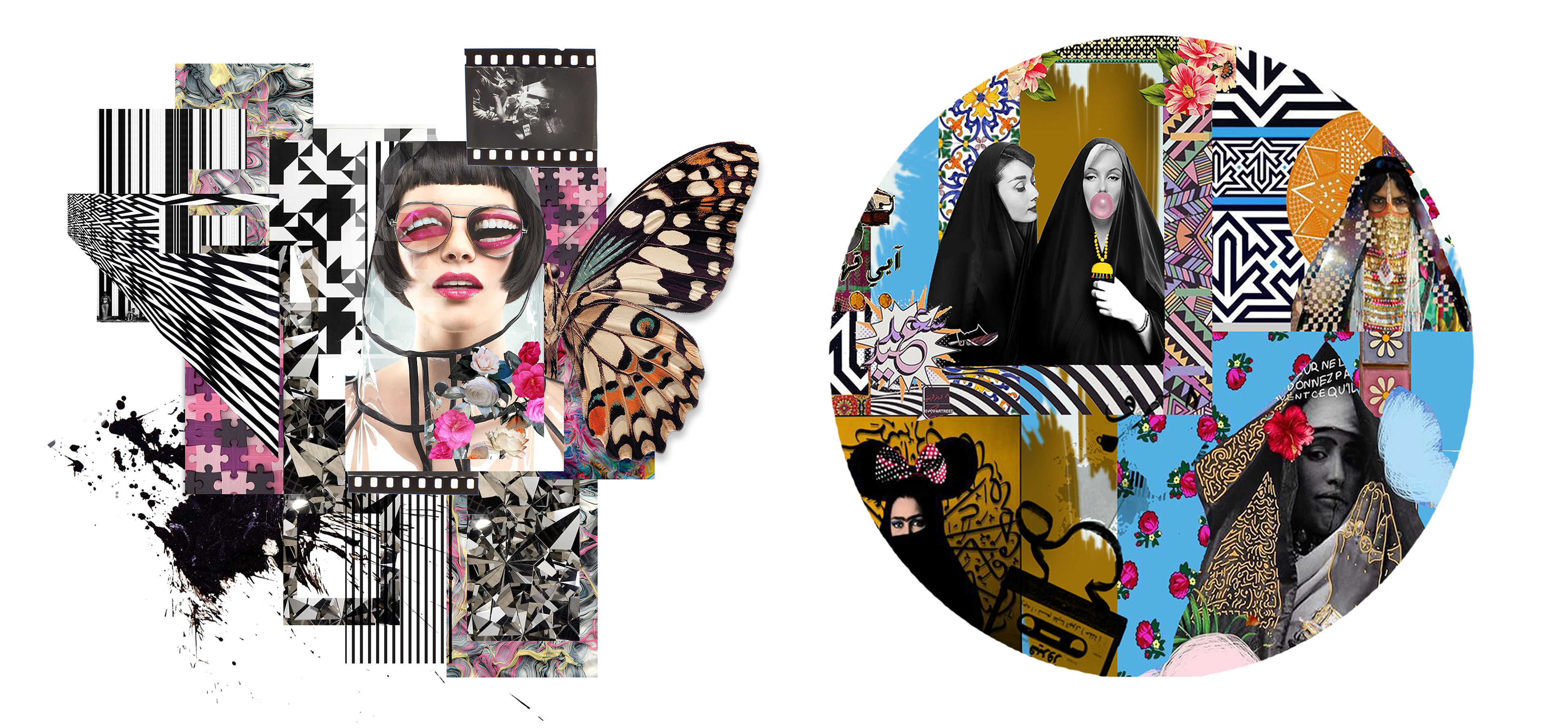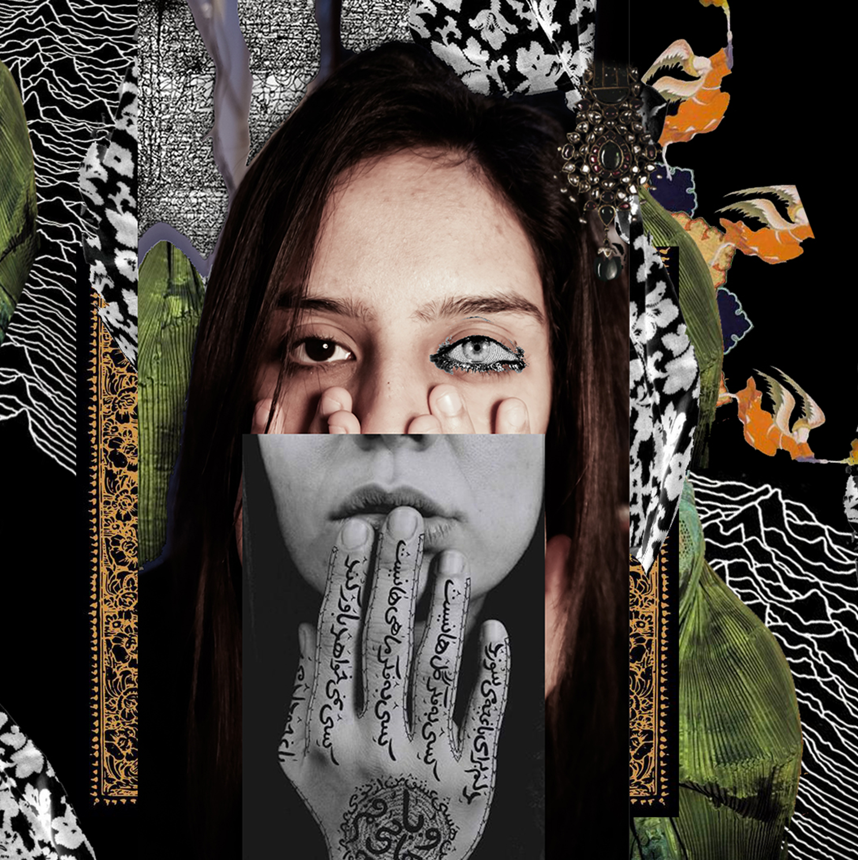 Collage Art inspired by the work of Shirin Neshat, particularly her series Women of Allah, which explores themes of silence, visibility, and resistance.